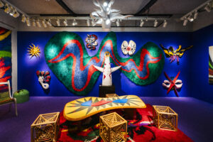 本展は、新たに製作した1/40スケールの「マミ会館」をはじめ、太郎と空間とのかかわりを証言する多彩な作品や資料を集成するとともに、太郎が生活の場に送り込んださまざまな作品群で展示室を彩ります。
